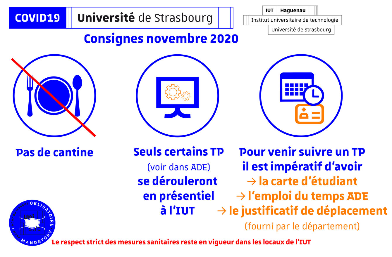 - Le port du masque sera obligatoire partout dans l'IUT et pour tout le monde.