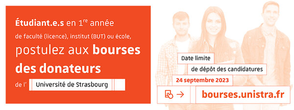 Cher.e.s étudiant.e.s de l'IUT, postulez aux bourses des donateurs de l’Université de Strasbourg ! L'Université de Strasbourg propose à ses étudiants des bourses pouvant atteindre 27 000 € sur 3 ans
