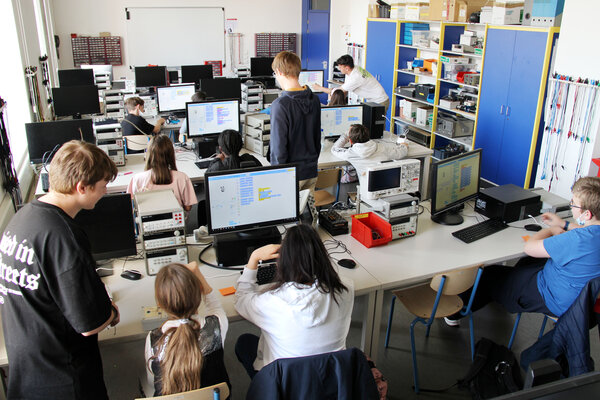 Dans le cadre du programme "École ouverte", en partenariat avec le CASF (Centre d'Animation Sociale et Familiale) de Bischwiller, l'IUT accueille cette semaine une vingtaine d'élèves de la cité scolaire André Maurois pour un atelier de robotique.