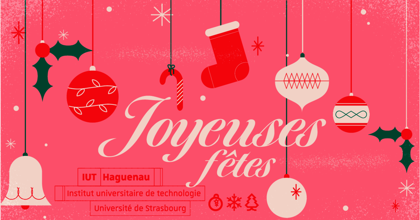 Fermeture de l'IUT 16 décembre 2022 9 janvier 2023 18h 8h L’IUT de Haguenau sera fermé du vendredi 16 décembre 2022 au soir au lundi 9 janvier 2023. Bonnes fêtes à tous et meilleurs vœux pour cette nouvelle année 2023 !